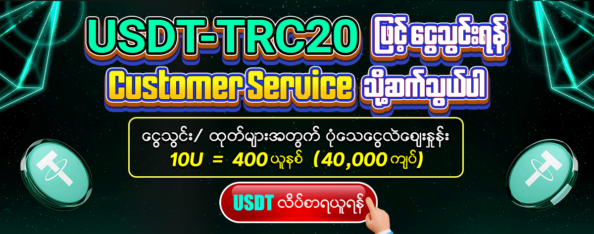 💵 USDT ေငြသြင္းလွ်င္ USDT ျဖင့္ ေငြထုတ္ႏိုင္ၿပီး ျမန္မာက်ပ္ျဖင့္ ေငြသြင္းလွ်င္ ျမန္မာက်ပ္ျဖင့္သာ ေငြထုတ္ယူႏိုင္ပါသည္။