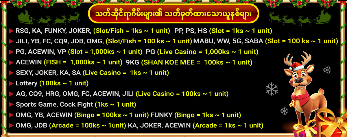 ⚠️Slot ဂိမ္းအားလုံးတြက္ခ်က္ေပးပါသည္။(YGG ၊ ACE WIN မပါဝင္ပါ)အႏိုင္ရရွိေသာဆုမ်ားကို ႀကိမ္ေရတစ္ဆကစားၿပီးမွသာလွ်င္ေငြထုတ္ႏိုင္မည္။